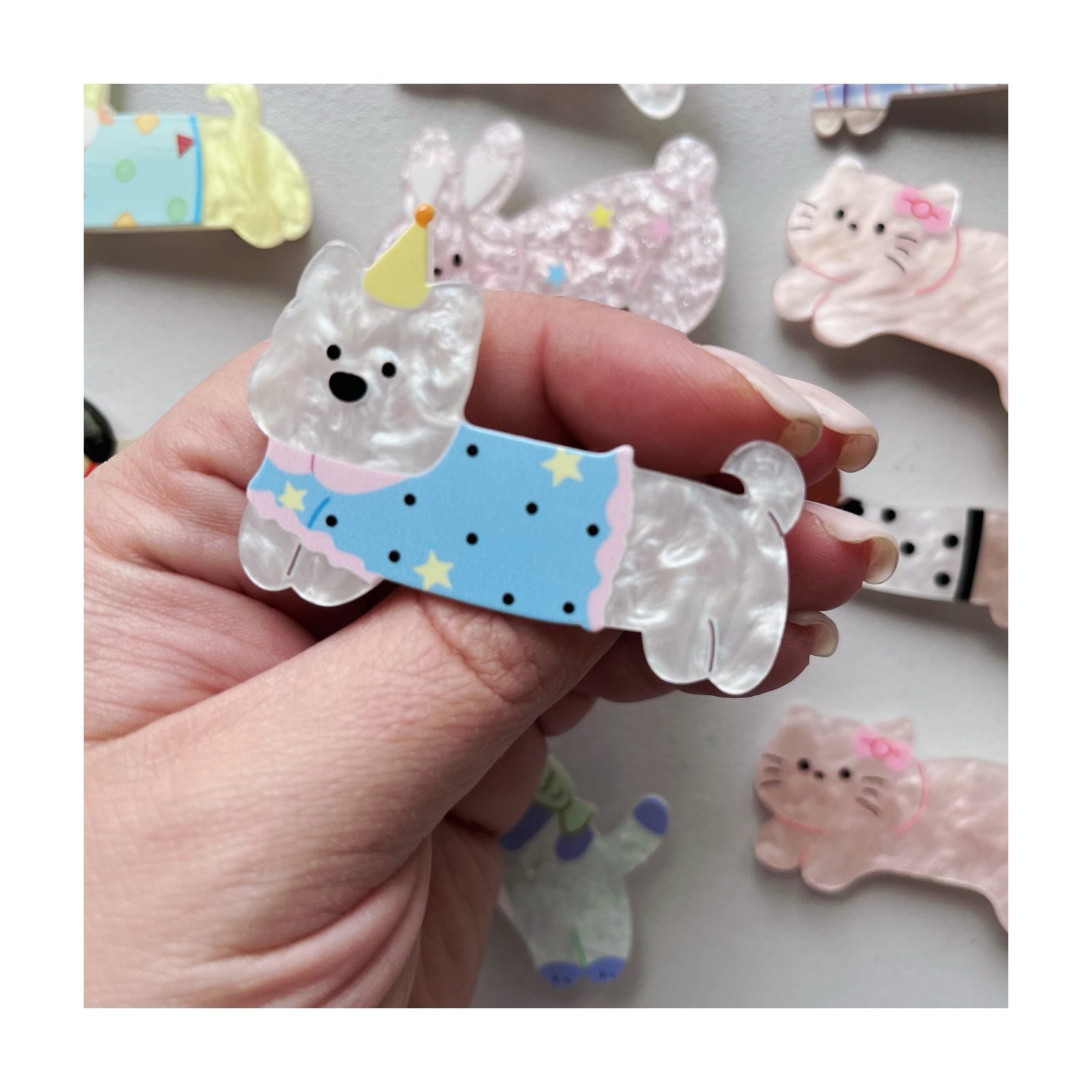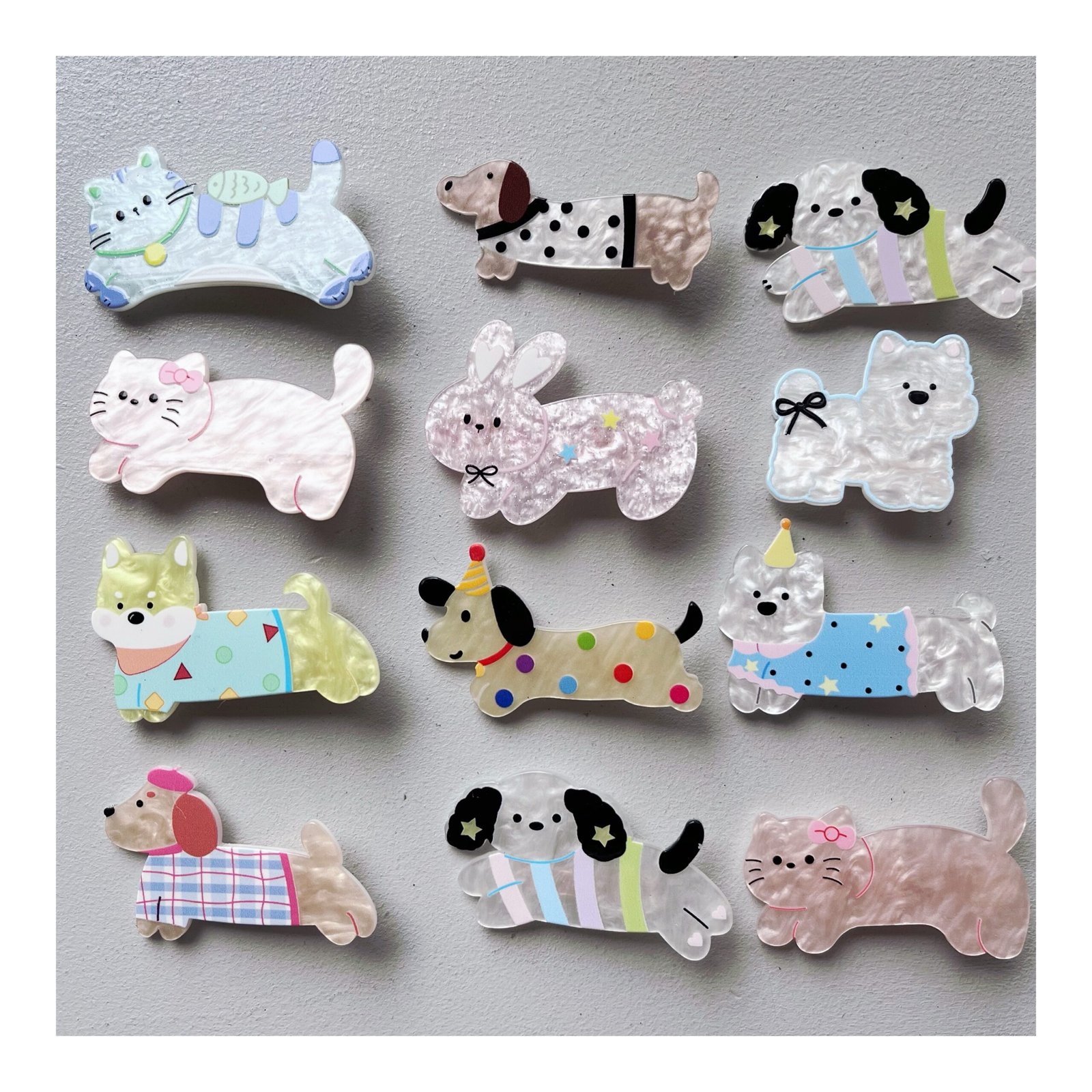 | Modelo | Salchicha Cumpleañero, Salchicha con Lunares negro, Salchica París, Caniche Cumpleañero, Perrito Amarillo, Perrito Rayas, Caniche con Moño negro, Gatita con moño, Coneja con estrellitas, Gatito con Pecesito |